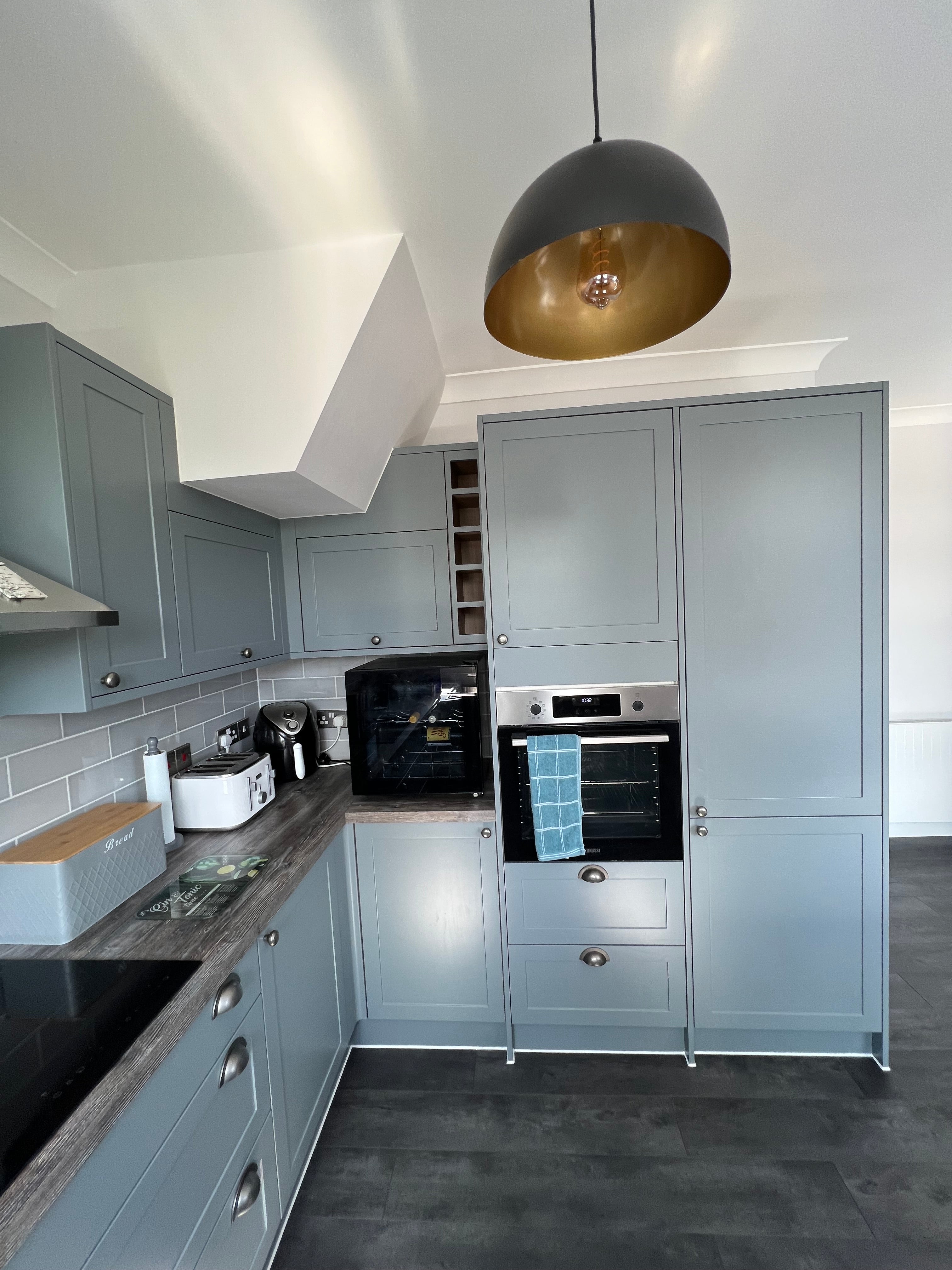 🔹 Contemporary Grey Metro Tiles – Enhancing the backsplash with a sleek, modern look.