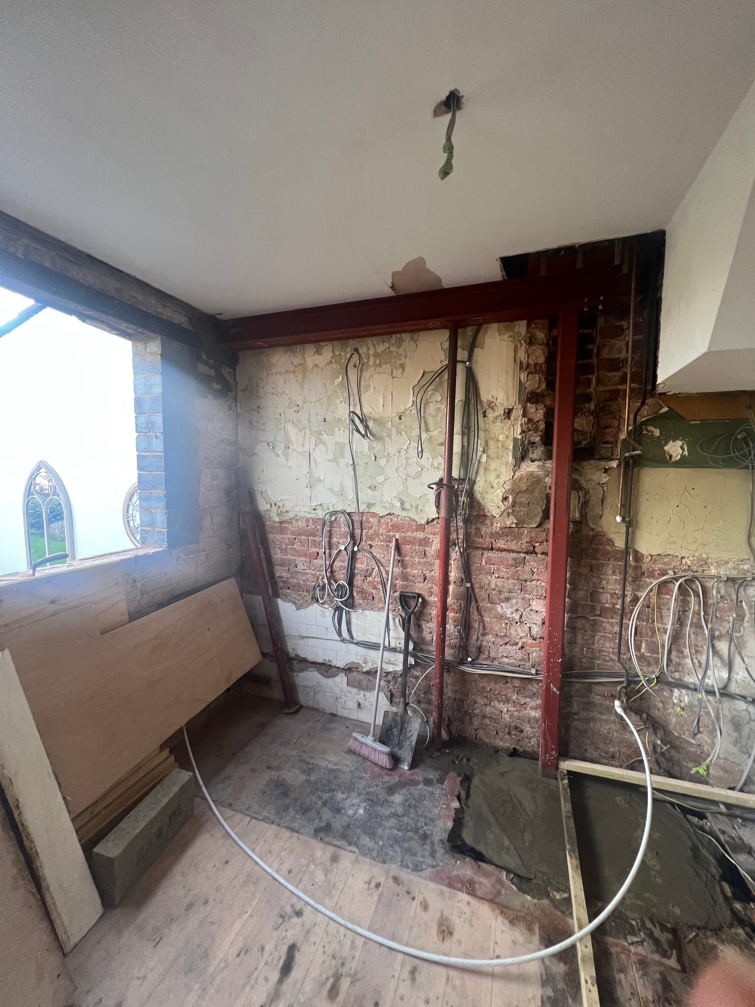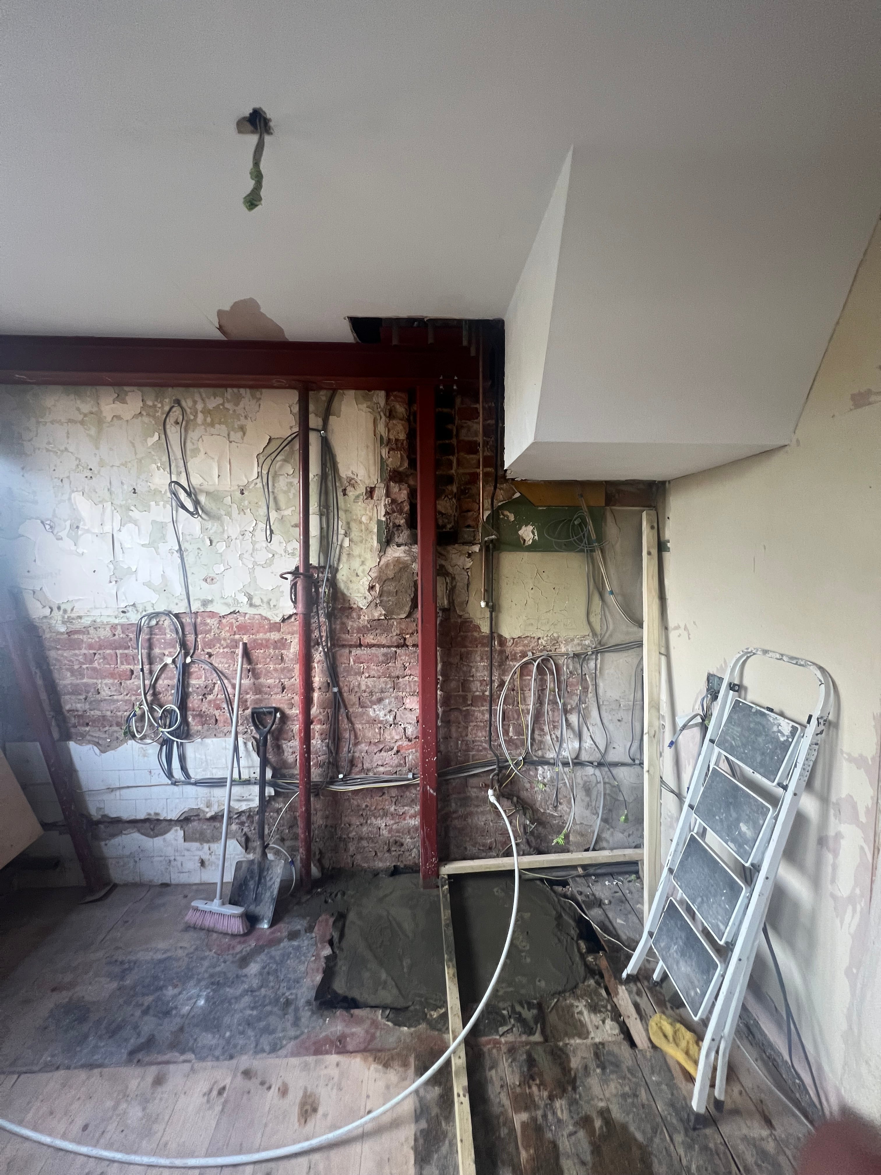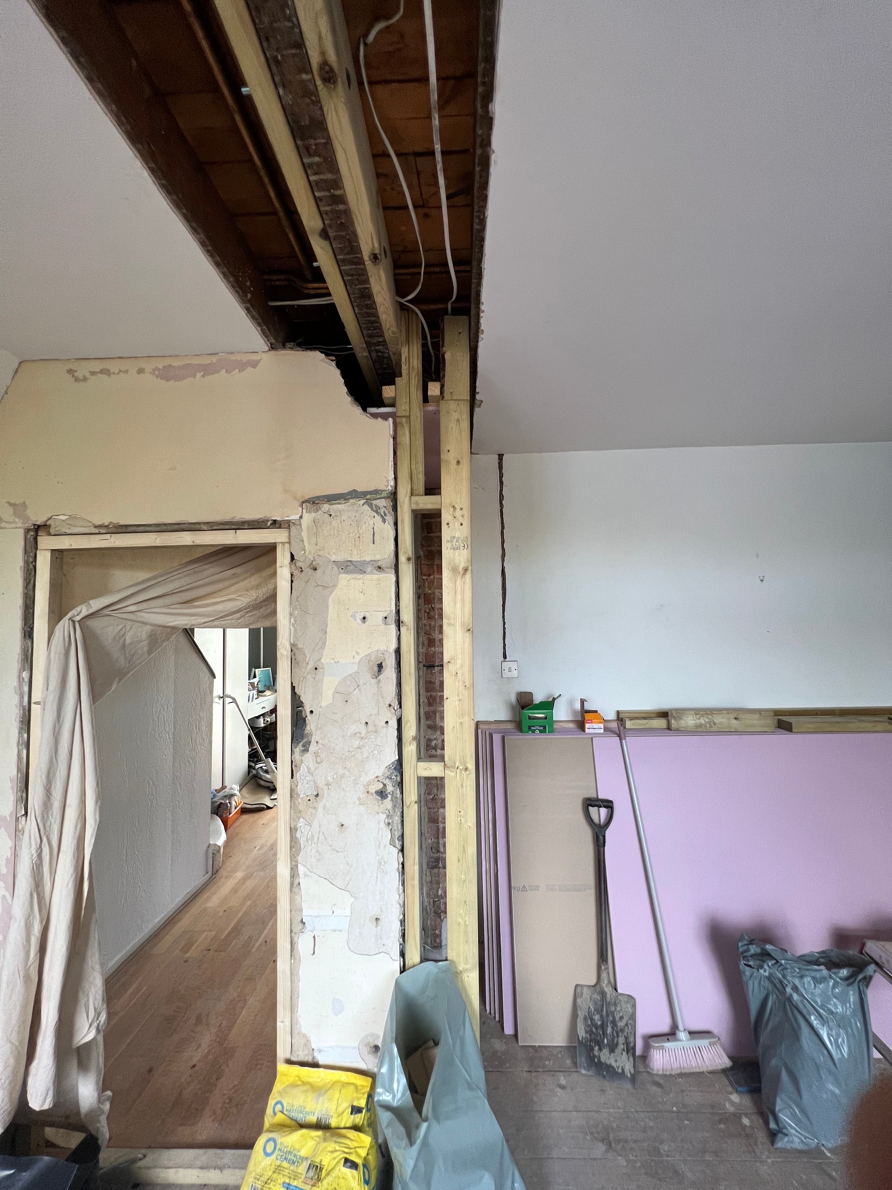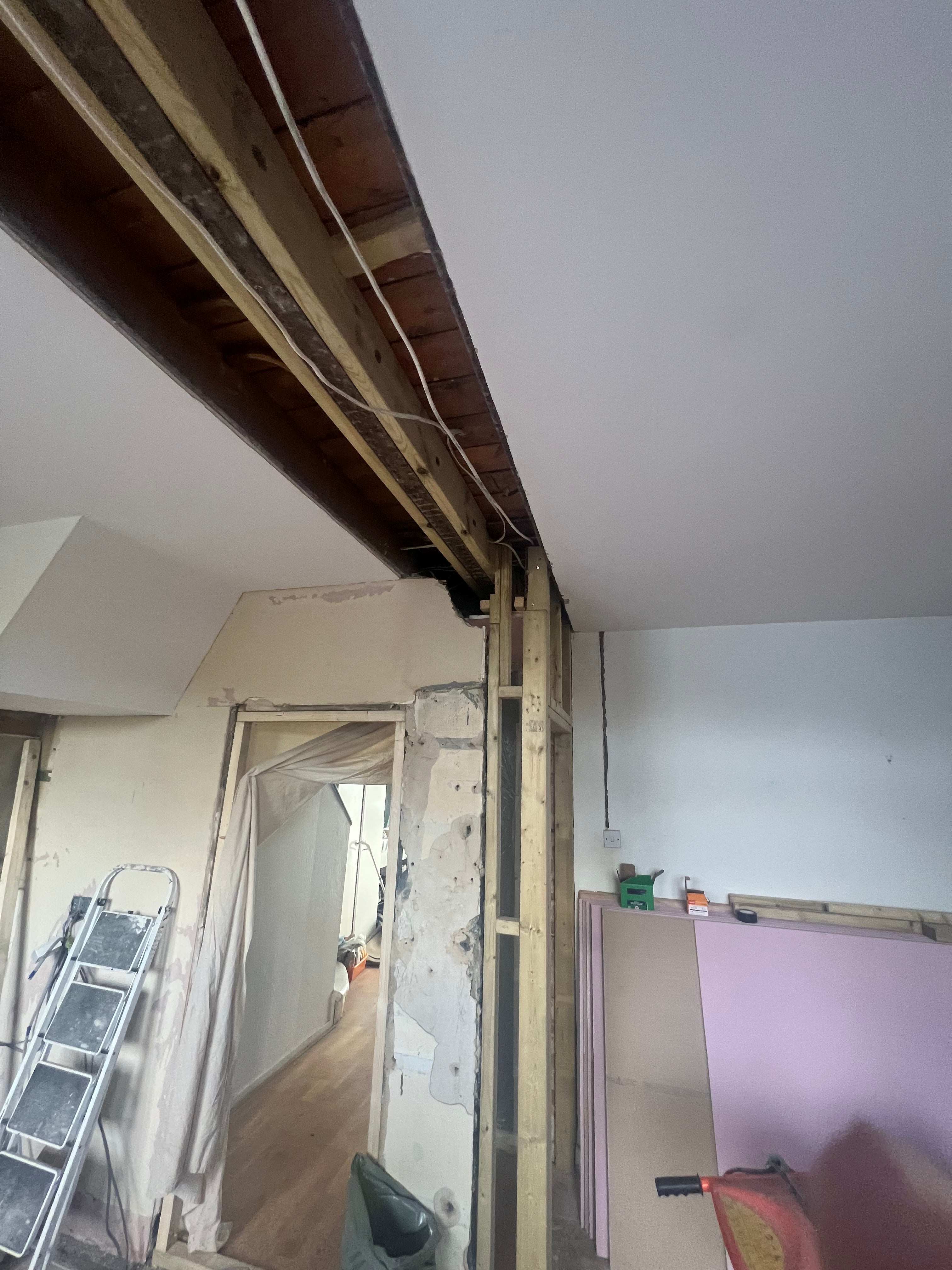 This project involved the safe removal of a chimney breast and a non-loadbearing wall between the kitchen and lounge, along with the installation of structural steelwork and ceiling joist reinforcement to create a spacious, open-plan design. Key highlights include: